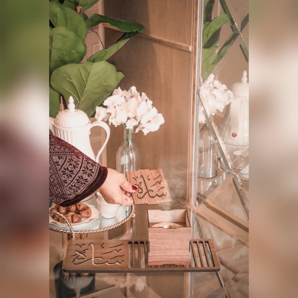 مبخرة و صينية انيقة مصممه من الخشب بطابع انيق ليضيف لمسة فاخرة لديكور منزلك.