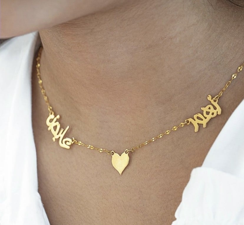 عقد بتصميم يجمع الإسمين مع قلب يتم صياغة الاسمين حسب طلبك ..